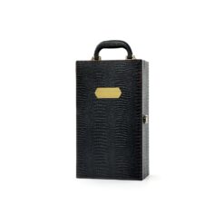 Kit vinho 4 peças em maleta de couro sintético texturizada. Contém saca-rolhas metálico, bico condutor com tampa, cortador de lacre e wine collar. Maleta com alça, trava de segurança e plaquinha plástica fixa. Área interna revestida de veludo com suportes de nylon com velcro e duas repartições para garrafas.